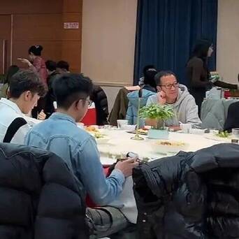 与辉同行团建聚餐照曝光!俞敏洪周成刚都参加了。俞老师和董宇辉并排坐在主播那桌,桌上摆的是陈年的茅台。董宇辉对同事是真舍得,抓紧时间吃喝后,还要去东方甄选春晚。