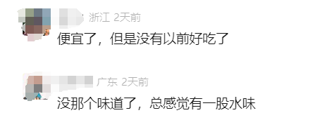 “便宜了,但是没有以前好吃了”