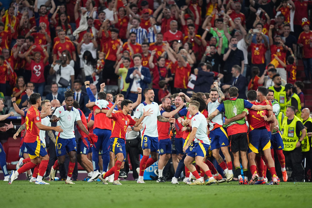 挡在“三狮军团”面前的,是本届欧锦赛表现出色的西班牙队。他们先是落位意大利队、克罗地亚队所在的“死亡小组”,随后又进入德国队、法国队所在的“死亡半区”,最终一路高歌猛进,成为欧锦赛历史上第一支在单届赛事取得六连胜(非点球大战胜利)的球队。